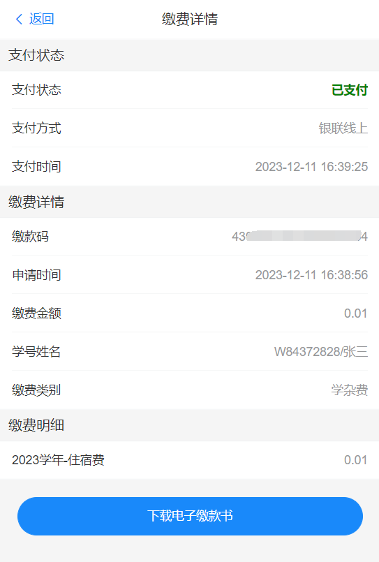 6、回到首页,查看缴费记录并下载电子一般缴款书