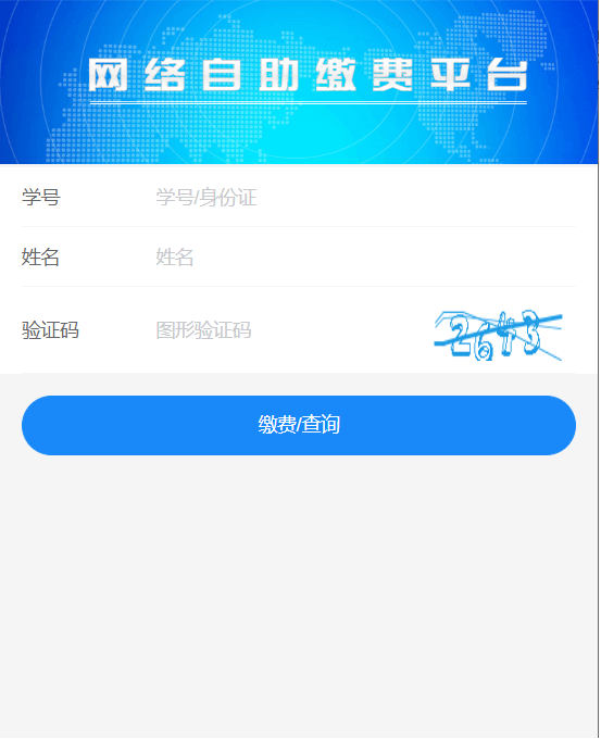 2、点击“在线缴费”,输入“身份证号\学号+姓名”,点击“缴费/查询”登录
