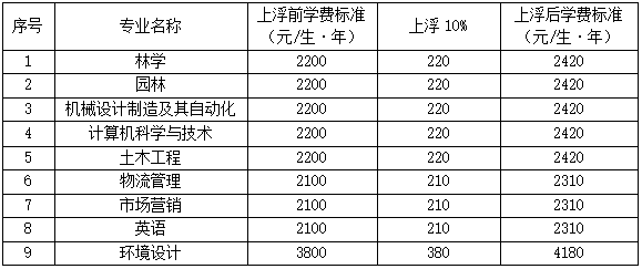 经湖南省教育厅、湖南省发展和改革委员会、湖南省财政厅批准,中南林业科技大学高等学历继续教育林学等9个国家级一流专业自2025级起学费标准上浮10%。2025级之前的学生按上浮前学费标准缴费。