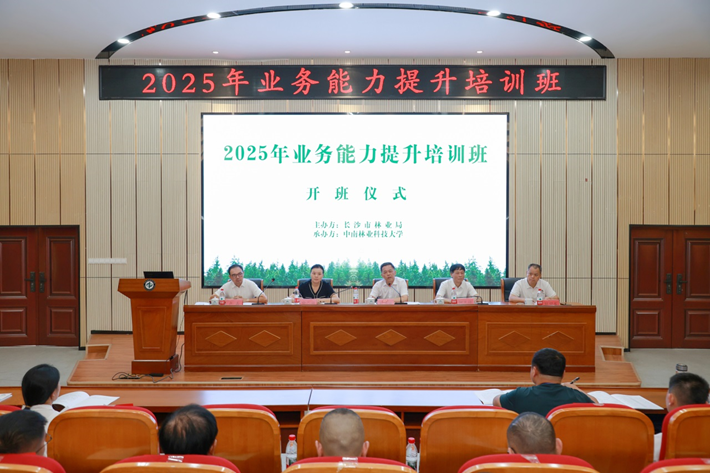7月9日,长沙市林业局2025年业务能力提升培训在我校顺利开班。市林业局党组书记、局长刘洪波、二级调研员刘望龙、人事处处长卢嘉、中南林业科技大学继续教育学院院长何志祥出席开班式,仪式由市林业局副局长喻小丽主持。