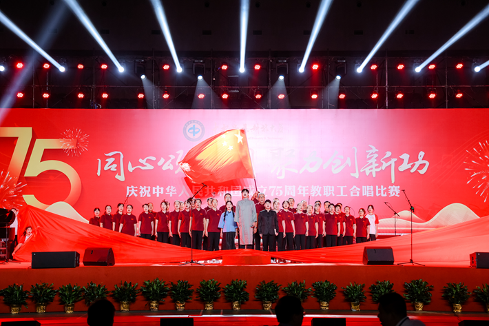 9月28日,中南林业科技大学体艺馆内歌声嘹亮,气氛热烈,由学校主办的“庆祝中华人民共和国成立75周年教职工合唱比赛”在此盛大举行。