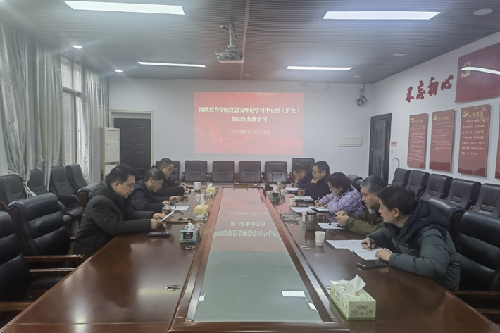 12月27日上午,学院党总支理论学习中心组(扩大)在知行楼201会议室举行2024年第十二次集体学习,中心组全体成员、各科室负责人参加会议。会议由党总支书记张亮主持。