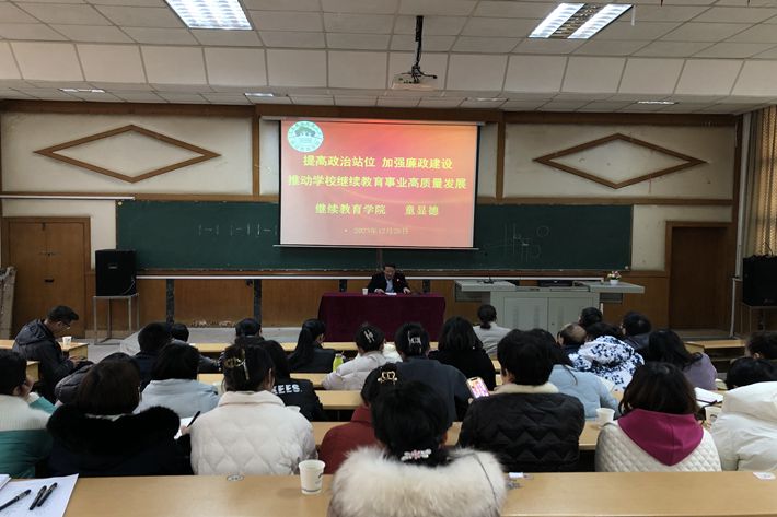 12月26日下午,学院党总支书记童显德在一楼阶梯教室讲授廉政教育课,学院全体教职工参加学习。