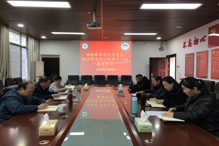 12月26日下午,学院党总支理论学习中心组在知行楼201会议室举行2023年第十二次集体学习研讨。中心组全体成员参加会议。会议由党总支书记童显德主持。
