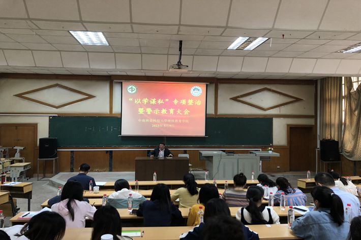 会上,院长刘梦飞传达了湖南省和学校“治理教育乱收费”及“以学谋私”专项整治工作相关会议精神,详细学习和解读了《中南林业科技大学“以学谋私”问题专项整治工作实施方案》,要求全院教职工坚持对标对表、坚持实事求是,严格按照学校“以学谋私”专项整治工作要求,认真开展自查自纠,如实填写《高校“以学谋私”问题自查自纠表》。