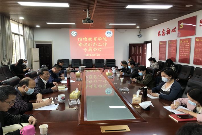 5月24日上午,继续教育学院在知行楼201会议室组织召开意识形态工作专题会议,学院全体院领导、各科室负责人、理论学习中心组全体成员、学工办全体成员参加会议。会议由党总支书记童显德主持。