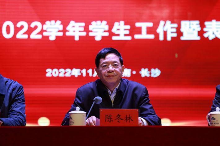 11月16日下午,我院2021-2022学年学生工作暨表彰大会在学校雅韵堂隆重举行。学校党委委员、副校长陈冬林教授、学校学工部部长严爱军、学校团委书记李凯、学院领导班子、潇湘教学点李奥男、政法教学点刘靖洲出席大会,学院各科室负责人、教师代表、校内获奖学生、22级新生代表参加了大会。会议由学院党总支书记童显德主持。