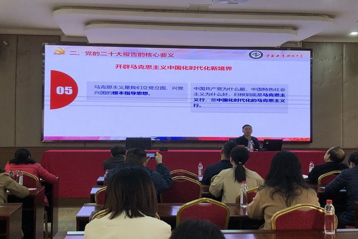 4月7号上午,学院在培训中心二楼报告厅举行“学习贯彻党的二十大精神”专题报告会,报告会由学校马克思主义学院党总支书记周预分主讲,学院党总支书童显德主持,全院教职员工参加了报告会。