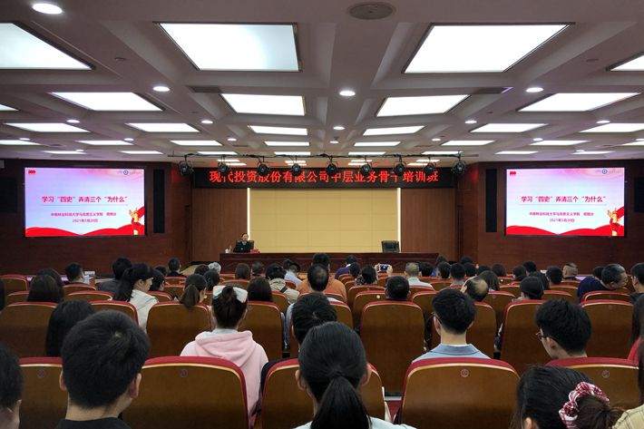 5月20日,我院在博文楼二楼报告厅举办了以《学习“四史”弄清三个“为什么”》为主题的党史学习辅导讲座,参加人员有学院全体党员及入党积极分子、现代投资股份有限公司中层业务骨干培训班党员,主讲人是中南林业科技大学马克思主义学院党总支书记周预分。