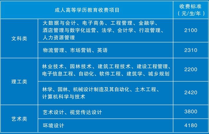 备注:经湖南省教育厅、湖南省发展和改革委员会、湖南省财政厅批准,中南林业科技大学高等学历继续教育林学等9个国家级一流专业自2025级起学费标准上浮10%。