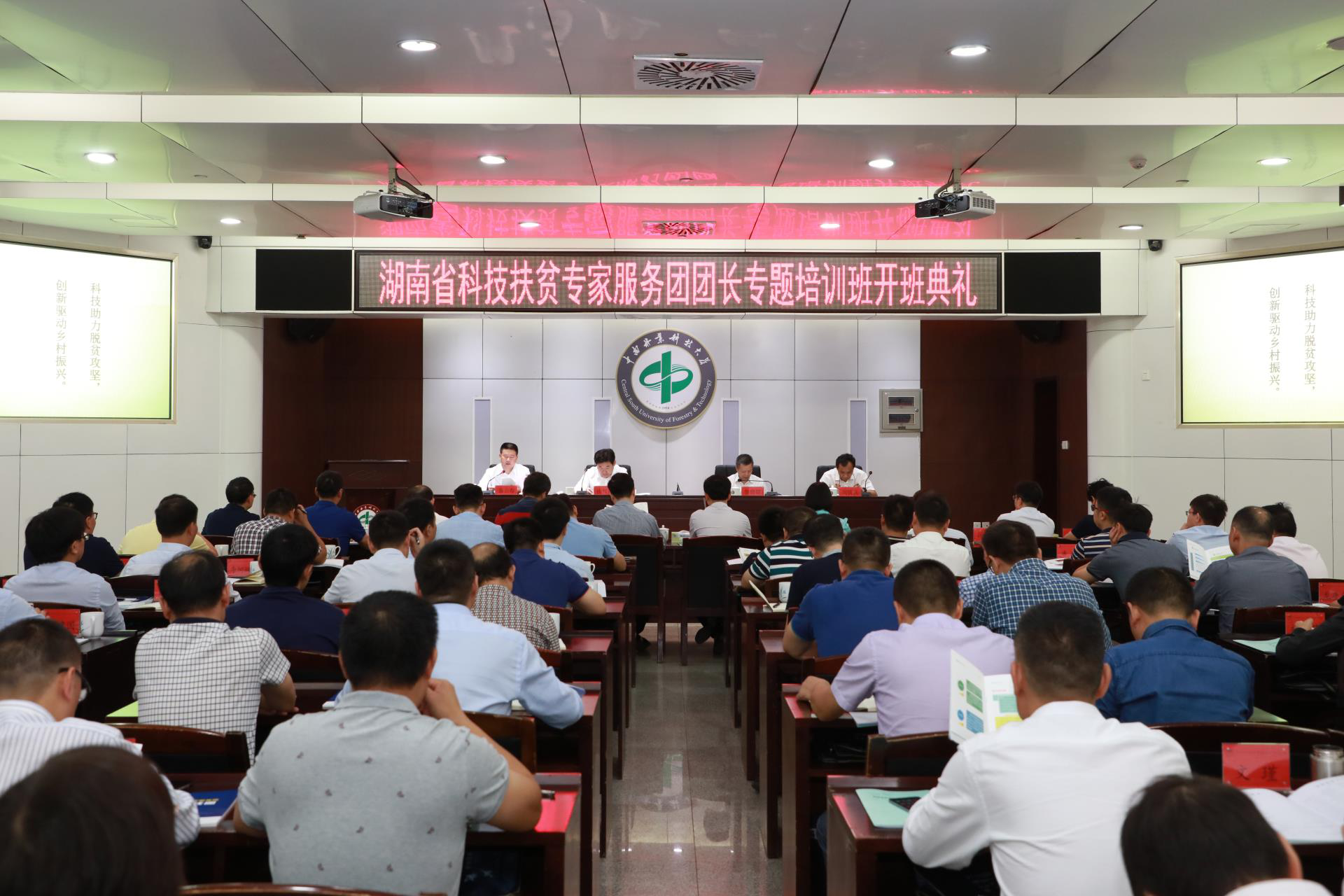 10月8日,湖南省科技扶贫专家服务团团长专题培训班在我校崇德楼四楼会议室隆重开班。省委人才办主任、省委组织部部务委员由红军,省科技厅党组副书记、副厅长贺修铭,学校党委副书记秦立春出席开班仪式。参加仪式的还有省委组织部人才工作处,省科技厅农村科技处,省扶贫办开发指导处,学校组织部、科技处,继续教育学院的相关领导。开班仪式由省科技厅副巡视员刘铁兵主持。