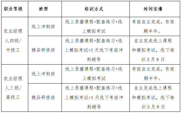 | 农业经理人 | 三级/高级工 | 380元/人 | 理论+实操 | 机考 |