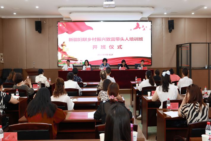 9月18日上午9点,新疆妇联乡村振兴致富带头人培训班在学校培训中心报告厅举行开班仪式。新疆维吾尔自治区妇联党组成员、副主席帕提古丽·艾比布,湖南省妇联副主席卢妹香,中南林业科技大学党委副书记仇怡,新疆维吾尔自治区乡村振兴局开发指导处副处长唐正花,湖南省妇联妇女发展部部长黄蕴,中南林业科技大学继续教育学院(企业管理干部培训中心)院长刘梦飞出席开班式。开班仪式由中南林业科技大学继续教育学院(企业管理干部培训中心)党总支书记童显德主持。