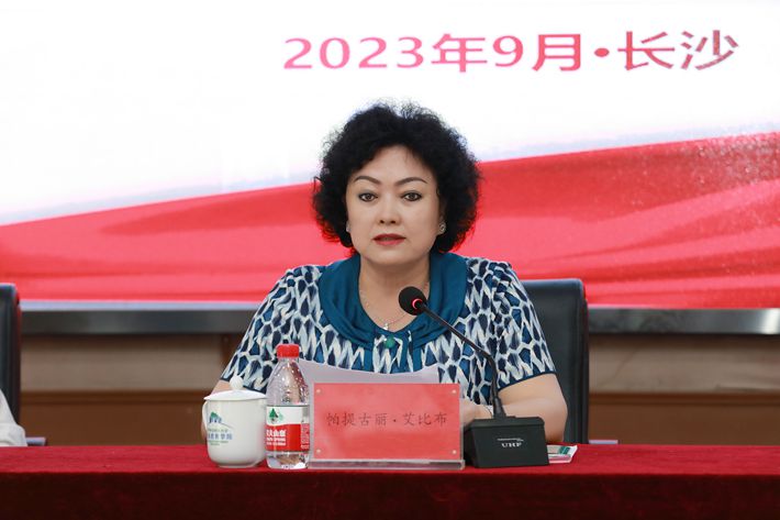 仇怡代表学校对参加培训的学员表示热烈欢迎,简要介绍了学校的历史沿革、发展现状、教育理念、专业特色、社会贡献,以及我校企业管理干部培训中心的办学成效。她指出,学校企业管理干部培训中心经多年发展,已成为多层次高规格的国家级培训基地,我校作为湖南省乡村振兴优质高校,充分发挥学科专业和人才优势,利用 “湖南省绿色发展研究院”、“乡村振兴研究中心”、“农林经济管理研究中心”、 “乡村振兴青年人才研究院”等平台,聚焦乡村振兴的理论和实践问题,积极开展乡村振兴人才培养。近五年来,我校共承办湖南省、广东省、广西省、浙江省和海南省等地区乡村振兴人才专题培训班二百余期,此次培训班的顺利举办是新疆妇联领导对我校培训工作的高度信任和充分肯定。我校将充分发挥学校优质教学资源优势,提高教育培训的质量和水平,为大家创造良好的学习环境。